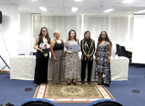 Ao lado da presidente do TRT-BA, desembargadora Ivana Magaldi, e da vice-coordenadora do Subcomitê de Equidade, juíza Dilza Crispina Santos, Nadva Cruz destacou a relevância do debate para fortalecer políticas inclusivas dentro e fora do Judiciário.